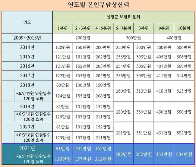 보건복지부와 건강보험공단이 최근 ‘2021년도 본인부담상한액’을 발표했는데요.